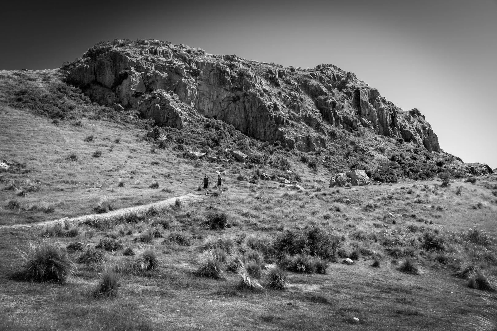 Cave at base of Uluru inselberg, Uluru-Kata Tjuta National Park, Northern Territory, Australia (2019). The Mutijulu Arkose (550-530 Ma) exhibits classic “flared slope” geomorphology. Fresh arkose (grey) can be seen in the lower half of the image but elsewhere the cave displays the red patina characteristic of Uluru.